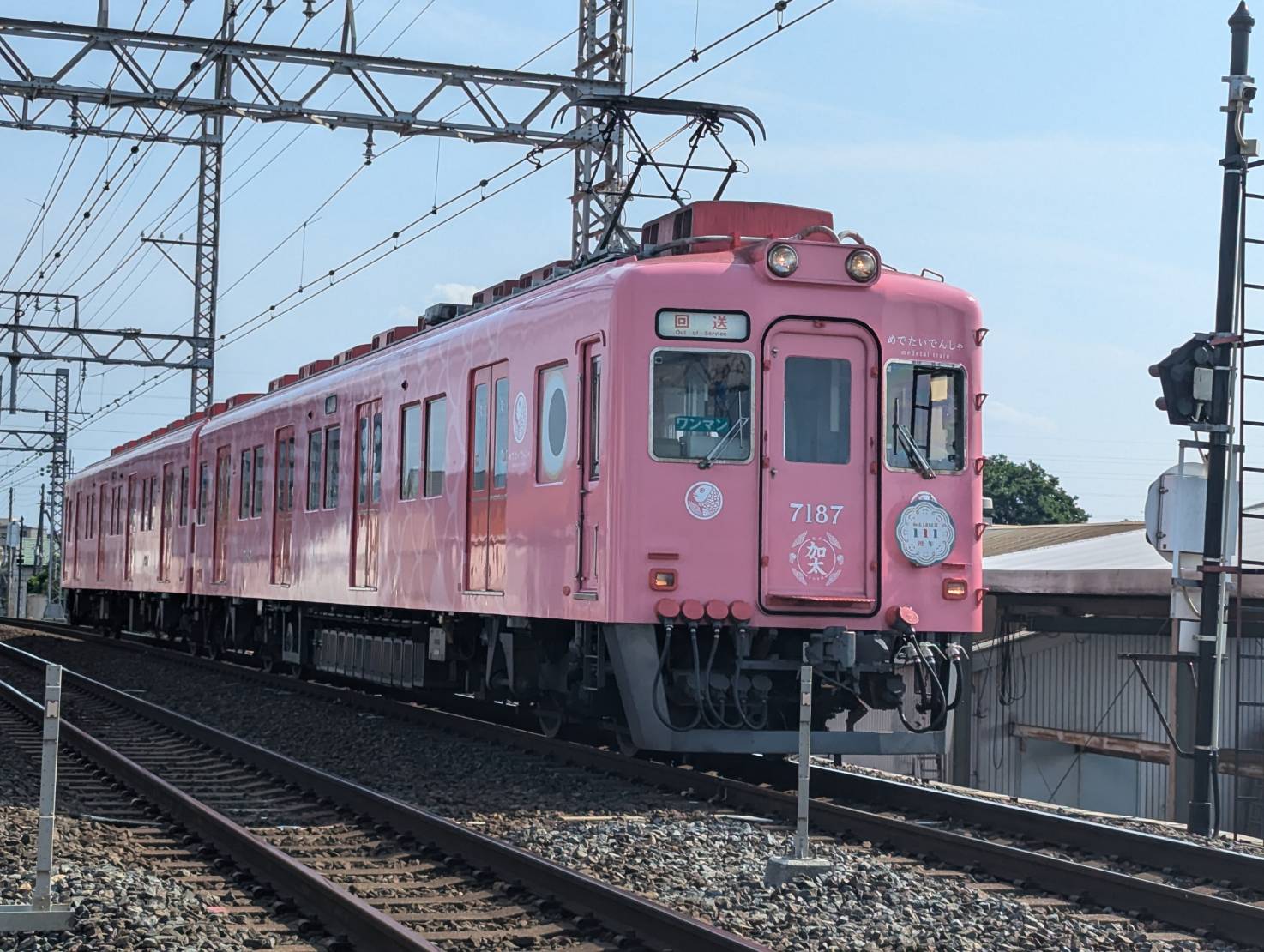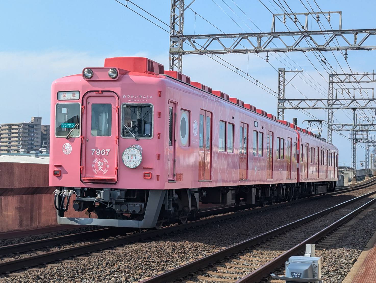 本日昼下がり南海電鉄のめでたい電車のさちが標識灯及びテールライトをLEDへ更新するため及び疎開回送のために住之江電車区へ回送されました