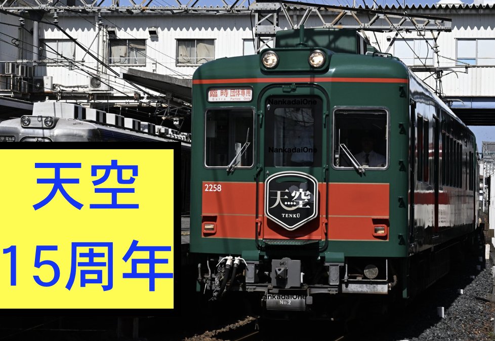 この度南海電鉄の2200系改造2208Fの天空は今年2024年7月3日に15周年を迎えることからヘッドマークをつけるなどイベントを行います。