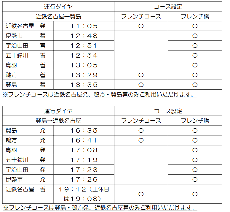 今回まさかのまさかのフレンチコースのお客様は鳥羽で乗降できないようです